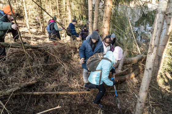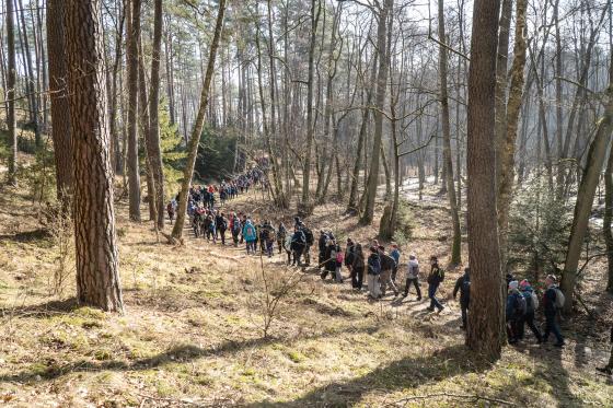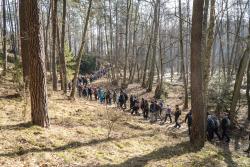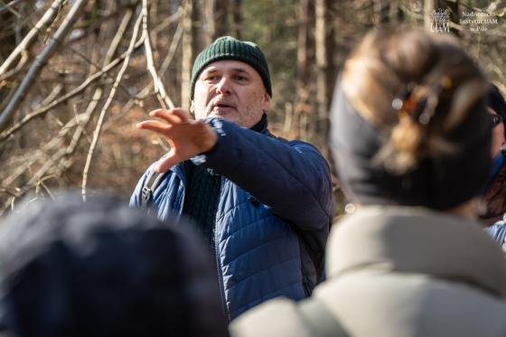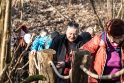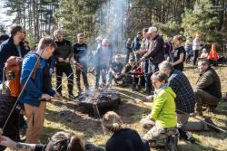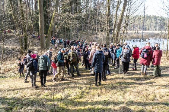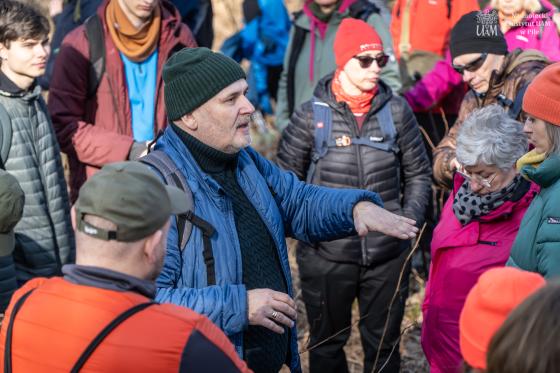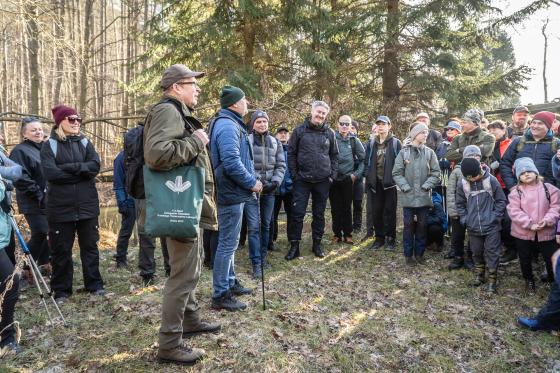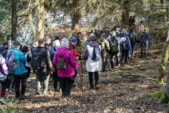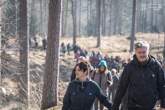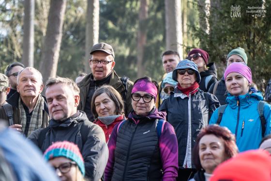 W wydarzeniu wzięło udział około 180 uczestników (!!), którzy wspólnie ruszyli na przedwiosenną wędrówkę przez niezwykłe siedliska Rynny Jezior Kuźnickich. Dopisała nam piękna, słoneczna i prawdziwie wiosenna pogoda, która tylko podkreśliła wyjątkowy charakter tej wyprawy. Wycieczkę poprowadzili dyrektor NI UAM w Pile dr Paweł Michał Owsianny oraz nadleśniczy Nadleśnictwo Zdrojowa Góra Adam Standio, opowiadając o przyrodzie, krajobrazie oraz różnych formach ochrony tego wyjątkowego obszaru. Nie zabrakło ciekawych obserwacji terenowych, rozmów o lasach i mokradłach oraz realizowanej w praktyce idei #OneHealth, która przypomina, że zdrowe środowisko = zdrowy człowiek. Nasz spacer jest przykładem kąpieli leśnej – wpływającej pozytywnie na nasze zdrowie fizyczne i psychicznie. Naszą wędrówkę zakończyliśmy tradycyjnie przy ognisku, gdzie był czas na odpoczynek, rozmowy i wspólne podsumowanie dnia.
