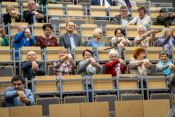 Twórcy z zaprzyjaźnionych stowarzyszeń w panelu wystawowym uświetnili konferencję swoimi pracami rękodzielniczymi, a ćwiczenia rozluźniające wprawiły uczestników w dobry nastrój. Szczególną uwagą cieszył się punkt medyczny prowadzony przez wolontariuszki z NUTW, w którym można było wykonać bezpłatnie badania profilaktyczne: pomiar ciśnienia krwi, poziom glukozy, kwasu moczowego, cholesterolu i pomiar tkanki tłuszczowej.